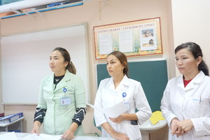Сотрудники отделения ВОП №1 Городской поликлиники №4 г. Алматы (психолог А. Султанкулова, участковая медсестра М.Айбекова) провели разъяснительную работу «Об Обязательном социальном медицинском страховании» для педагогов школы-гимназии № 68.