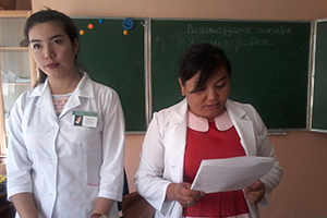 В рамках «Месячника качества медицинских услуг школьникам» участковая медсестра Асанова Назым из ГКП на ПХВ «Городская поликлиника №4» УЗ г.Алматы встретилась с учащимися 7 класса школы-гимназии №139 имени А.Байтурсынова и провела лекцию на тему «Мой безопасный путь в школу». В том числе психолог поликлиники №4 Абдукадыр Шолпан провела тесты личностных качеств и характера.