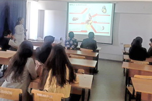 Алматы қаласы №4 Қалалық емхананың дәрігері Ұ.М.Амиркенова Қазақ-Америкалық университеті жанындағы Алматы байланыс колледжі студенттерімен «Ішімдік – шыңырауға қадам!» тақырыбында интерактивті түрде семинар өткізді. Семинар ішімдік ішуден бас тарту Үлттық Күніне орай «Салауаттылық – өмір салты!» Ұлттық бағдарлама аясында өтті. «Біздің мақсатымыз – саламатты өмір салтын насихаттау, жастарда ішімдік пен шылым шегуге жағымсыз көзқарас қалыптастыру, өз денсаулығына байыппен қарау қажеттігіне көз жеткізу» - дейді дәрігер.