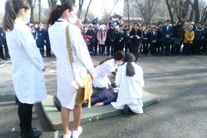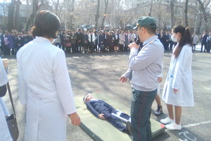 Алматы қаласы №4 Қалалық емхананың дәрігері А. О. Сапарова мен мейірбике А.К. Сембаева №72 жалпы білім беретін мектептің БӘД оқытушысымен бірлесіп «Төтенше жағдай кезінде зардап шеккендерге алғашқы медициналық көмек көрсету» тақырыбында тәжірибелік сабақ өткізді. Сабақ барысында ТЖ кезінде алғашқы медициналық көмек көрсетудің негізгі қағидалары түсіндірілді. Манекен-тренажерда адам өмірін сақтап қалу әдістері көрсетілді. Атап айтсақ, жүрек-өкпе реанимациясының негіздері, әртүрлі жарақат кезінде алғашқы медициналық көмек көрсетудің тәжірибелік дағдылары. Оқушыларға алғашқы медициналық көмек көрсету ережесін білу ғана емес, зардап шегушінің жағдайын қиындатпау үшін істеуге болмайтын әрекеттер туралы да түсіндірілді.