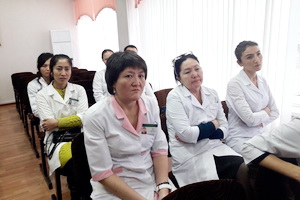Алматы қаласы №4 Қалалық емхананың заңгері Ш.А. Анарбаева Алматы қаласы әкімдігінің Дін істері жөніндегі басқармасының «Зерделеу және талдау орталығының» бас сарапшысы Е.К. Бердібековпен емхана қызметкерлерінің...