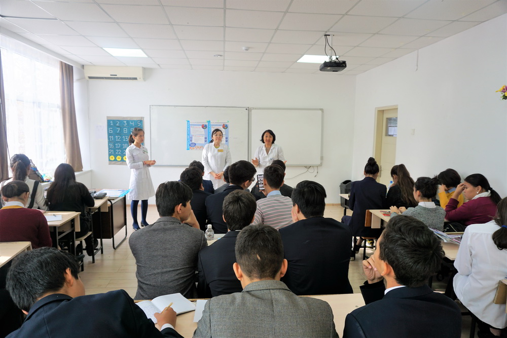 Врач-эпидемиолог Ф. Аметбекова Городской поликлиники №4г. Алматы совместно с сотрудником кабинета ЗОЖ Ж.Ешназаровой провели семинар для учащихся 10 класса и студентов 1 курса Учреждение «Школа-интернат-колледж» имени Сулеймана Демиреля на тему: