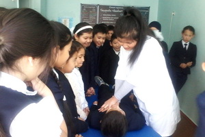 В рамках «Месячника качества медицинских услуг школьникам» медсестра Гаухар Зоржанова из ГКП на ПХВ «Городская поликлиника №4» УЗ г. Алматы провела практические занятия для учащихся общеобразовательной школы №145 им. Аль-Фараби по принципам диагностики неотложных состояний, угрожающих жизни, выполнению базовых реанимационных мероприятий в рамках своей компетенции. А также школьники получили полезную информацию о таком опасном заболевании как диабет на тему: «Продукты, которые могут победить диабет».
