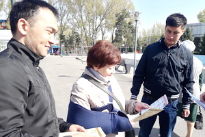 В г. Алматы с 1 по 30 апреля проходит месячник проведения Национальной программы «Безопасная жизнь!» по профилактике травматизма. Целевая группа - дети от 3 лет и взрослое население старше 64. В рамках программы социальные работники взрослого отделения Городской поликлиники №4 г. Алматы – Д.Садыков, О. Алибеков и старший соц.работник Ахметбаева С. провели обучающие беседы с территориально закрепленным населением на территории супермаркета на тему: «Профилактика физактивности».